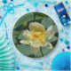 Auf dieser Papiertafel befindet sich eine schöne Lotusblüte, die in einem Teich auf der Chatfield Hollow Farm in Killingworth, Connecticut, wächst. Karo an diesen phantastischen Ort unter chfbandb.com und chatfieldfarm.com