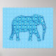 Digitale Darstellung eines Elefanten in gemischten Medien vor einem arabesken gekachelten Hintergrund - türkisfarben, dunkelindigoblau-weiß-lotus-Blume vor Aquarelle
