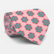 Krawatte in einem japanischen Mandala-Design, das eine stilisierte Lotus-Blume darstellt, die Reinheit, spirituelles Erwachen und Treue symbolisiert - Blume in tiefkorallenrosa und türkis/pfauenförmig, mit schwarzem Akzent, auf einem hellkorallenrosa Hintergrund