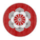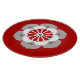 Japanisches Mandala Design Schneidebrett, das eine stilisierte Lotus-Blume darstellt, symbolisiert Reinheit, spirituelles Erwachen und Treue - Blume in silbergrau / grau, rot und weiß, auf einem dunkelchinesischen, roten Hintergrund