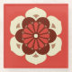 Japanischer Mandala Design Glas Untersetzer, das eine stilisierte Lotus-Blume darstellt, symbolisiert Reinheit, spirituelles Erwachen und Treue - Blume in Mandarinenorange, Creme, Schokoladenbraun und Gold auf mandarinorangefarbenem Hintergrund