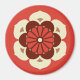 Japanischer Mandala-Designrunder-Magnet, der eine stilisierte Lotus-Blume darstellt, symbolisiert Reinheit, spirituelles Erwachen und Treue - Blume in Mandarinenorange, Creme, Schokoladenbraun und Gold auf mandarinorangefarbenem Hintergrund