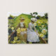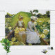 Ein Puzzle mit dem Bild Lotus Lilies (1888) von Charles Courtney Curran, einem amerikanischen Impressionisten, der für seine Landschaften und figurativen Werke, insbesondere von Frauen, bekannt ist. Es zeigt zwei Frauen unter einem Sonnenschirm, sitzend in einem Boot inmitten einer Blüte gelber Lilien in einem Teich.