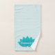 Yoga thematisierte Schweiß Handtuch in Robin's Eiblau mit einem kleinen weißen Polka Punkt Muster gemacht. An einem Ende des Handtuchs befindet sich eine Aqua-Blue Lotus Silhouette, die durch das Lesen von Namaste in Weißtönen übersetzt wird. Personalisieren Sie den weißen Text, um zu lesen, was Sie gewollt haben.