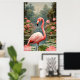 Ein schöner rosa Flamingo mit einem Lotusteich.