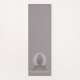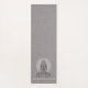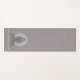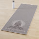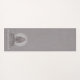Elegante Lotus Pose Figur Yoga Meditation Matte mit Weiß auf Grau mit einem texturierten Leineneffekt. Die leuchtende Sitzfigur hat eine Mandala, die ihren Kopf umrundet. Für Ihr Yoga oder Meditation Übungsstudio. Erschaffen Sie einen eleganten Look.