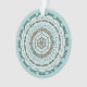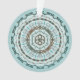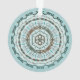 Dieses Mandala-Design besteht aus weißen, türkisfarbenen und braunen Mustern, die von keltischen Webstühlen und indischen Techniken inspiriert werden, wie z. B. Weinreben, Bänder und Lotus-Blume.
