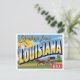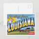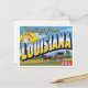 Celebrate the unique culture of the Bayou State with this colorful retro "Greetings from Louisiana" postcard. This classic large-letter design features state symbols and cultural icons, including a large pelican, and a traditional horse-drawn carriage, evoking the charm of New Orleans and the southern swamp lands. This vintage travel art is perfect for residents, Mardi Gras fans, history lovers, and collectors of Americana state souvenirs and New Orleans-style art.