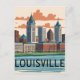 Mit diesem atemberaubenden Retro-Reiseplakat bringen Sie die lebendige Energie von Louisville, Kentucky, in Ihren Raum. Die Skyline der Stadt wird unter einem dramatischen Sonnenuntergangshimmel dargestellt. Diese Illustration zeigt detaillierte Architektur, eine landschaftliche Brücke und Reflexionen über den Ohio. Es ist in einem Vintagen Postkartenstil mit warmen Farbtönen und klassischen Schriften gestaltet und eignet sich hervorragend für jede Zuhause, Bürowand oder Galerie. Ein ideales Geschenk für Einheimische, Besucher oder Liebhaber amerikanischer Stadtbilder.