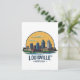 Mit diesem atemberaubenden Retro-Reiseplakat bringen Sie die lebendige Energie von Louisville, Kentucky, in Ihren Raum. Die Skyline der Stadt wird unter einem dramatischen Sonnenuntergangshimmel dargestellt. Diese Illustration zeigt detaillierte Architektur, eine landschaftliche Brücke und Reflexionen über den Ohio. Es ist in einem Vintagen Postkartenstil mit warmen Farbtönen und klassischen Schriften gestaltet und eignet sich hervorragend für jede Zuhause, Bürowand oder Galerie. Ein ideales Geschenk für Einheimische, Besucher oder Liebhaber amerikanischer Stadtbilder.