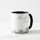 Moderne Louisville Skyline Kaffee Tasse Gunst Geschenk mit "Dankeschön" Skript. Das Design zeigt eine atemberaubende Skizze mit der Möglichkeit, Ihre Namen und den genauen Standort anzupassen. Geben Sie das Zazzle Design Tool für zusätzliche Anpassungen ein.