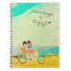 This warm and colorful summer watercolor illustration notebook features the two lovely girls Loulou & Ting and little doggy Pup riding on a vintage turquoise scooter in a sunny beach scene with the text 'Don't forget to enjoy' as a reminder to yourself... Even on the most dark and rainy days they brighten you up :-) You can make this notebook more personal by placing your own quote or name.