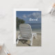 Erleben Sie die frisch vermählte Braut und feiern Sie am Morgen nach der Hochzeitsfeier mit dem tropischen Lounge-Chair Post Wedding Brunch Einladung. Dieses Tropic-Thema nach Hochzeit Frühstück oder Luncheon Invite bietet ein landschaftliches Foto von einem weißen Loungestuhl auf einem Sandstrand mit dem blauen karibischen Ozean im Hintergrund.