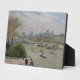 Der Louvre, der Frühling. Camille Pissarro. Frühlingslandschaft in warmen Farben. Ein breiter Fluss fließt durch die Stadt. Dampfschiffe fahren den Fluss entlang. Auf dem gegenüberliegenden Ufer gibt es große Gebäude. Es sind Wolken am Himmel. Reproduktion berühmter Kunstbilder im öffentlichen Bereich.