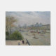 Der Louvre, der Frühling. Camille Pissarro. Frühlingslandschaft in warmen Farben. Ein breiter Fluss fließt durch die Stadt. Dampfschiffe fahren den Fluss entlang. Auf dem gegenüberliegenden Ufer gibt es große Gebäude. Es sind Wolken am Himmel. Reproduktion berühmter Kunstbilder im öffentlichen Bereich.