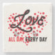 Add a touch of love to every time with our "Love All Day, Every Day" coasters. Designed to Warmth and Positivity to your space, these coasters are perfect for spreading love and joy with every drink. Crafted with care and style, they make a great addition to any home or a thoughtful gift for loved ones.