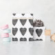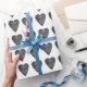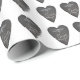 Unique black and white wrapping paper with heart shaped chalkboard pattern with the handwritten word "love".