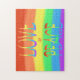 These fun and colorful puzzles feature my painting of blended rainbow colors in the background, topped with the words Love & Peace. The letters are also done in rainbow colors. Purchase online at CherylsArt on Zazzle.