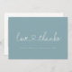 Express gratitude in modern elegance with this Love & Thanks Dusty blue Wedding Thank You Card. Featuring a calming sage background, chic white script, and a heart detail, this design combines simplicity with romance.