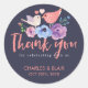 Vintages und rustikales Blumennest und Liebesvögel bedanken sich beim Aufkleber. Schönes Aquarell zeichnend von zwei Vögeln und ein Strauß von Blume. Vielen Dank, dass Sie Wort in Hand schreiben Skript-Kalligraphie Schriftart. Passen Sie den Wortlaut für Frühjahrsheirat, Gastgeschenk-Label für Brautparty, Babydusche, Geburtstagsparty oder jeden besondere Anlass an. Die Hintergrundfarbe kann auf das gewünschte Farbthema abgestimmt werden.