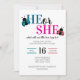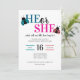 Feiern Sie Ihren kleinen Liebling mit dieser entzückenden Frühlings-geschlechtsspezifischen Reveal-Einladung! Mit charmanten Marienkäfer-Illustrationen in süßen rosa und blauen Tönen bringt dieses Design ein fröhliches, garteninspiriertes Gefühl, das perfekt ist, um Freunde und Familie zu begrüßen und Ihre aufregende Überraschung zu teilen. Die spielerische "Er oder Sie"-Typografie passt schön zu den fantastischen Marienkäfer-Grafiken und schafft einen modernen, aber süßen Stil, der warm, einladend und voller saisonaler Charme ist.