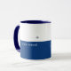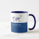 The map of the world, a small airplane... half-blue mug with a line for your name and special quote or slogan