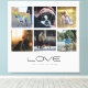 A heartwarming design featuring the word “love” above six photo spaces that celebrate the special bond between a person and their dog. Below, “The Carter Family” adds a warm, family-centered touch. Perfect for showcasing cherished memories and pet companionship in a clean, modern layout. All text and photos can be edited to reflect your own family name and favorite moments.