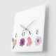 Love Floral Romantic Valentine’s Gift, Home Décor Quadratische Wanduhr