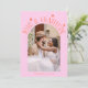 Simple and minimalistic wedding thank you card featuring your wedding photo with an arch frame with texts around that says "love & gratitude" and the couple's names and the wedding date. Message on the back of the card is editable and another picture can be added as well. This 2-sided thank you card is so timelessly stylish. The background is orange and pink.