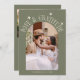 Simple and minimalistic wedding thank you card featuring your wedding photo with an arch frame with texts around that says "love & gratitude" and the couple's names and the wedding date. Message on the back of the card is editable and another picture can be added as well. This 2-sided thank you card is so timelessly stylish. The background is sage green.