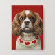 An adorable Cavalier Spaniel, in a woollen knitted dog jumper with love hearts.