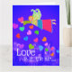 Love is in the Air is the message on this Valentine postcard. A naif folk art Angel flies over the town with her feathery wings. She is surrounded by bright colorful hearts fluttering in the sky. All text on the front and back can be customized with your own special message! This design is suitable for anyone from kids to adults.