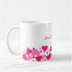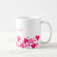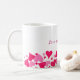 A classic white mug with a border of hearts and "Love is all you need" quote
