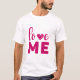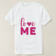 This design features the phrase “love ME” in a bold and expressive style. The word “love” is written in lowercase, while “ME” appears in bold uppercase letters, creating a strong visual contrast. The letter “o” in “love” is replaced by a pink heart filled with tiny heart shapes, adding a sweet and affectionate touch. The entire text is pink against a black background, giving the design a modern and striking appearance.