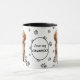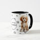 This mug for the Cavapoo Dog owner features an artist's watercolor portrait of an adorable buff colored Cavapoo. The image is printed twice, and between them is an oval with the black text that says "Love my CAVAPOO". The oval and dog images are placed on a background sprinkled with paw prints. You may easily change the text to something else, or personalize it, if you'd like.