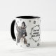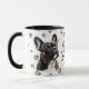 This mug for the French Bulldog owner features an artist's watercolor portrait of a beautiful dark French Bulldog. The image is printed twice, and between them is an oval with the black text that says "Love my French Bulldog". The oval and dog images are placed on a background sprinkled with paw prints. You may easily change the text to something else, or personalize it, if you'd like.