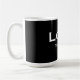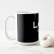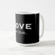 Black mug with "Love, not love..." in white typography that reminds us to choose divine Love rather than egoic love.