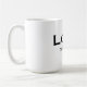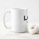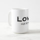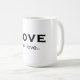 White mug with Love not love in black typography that reminds us to choose divine Love rather than egoic love.