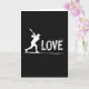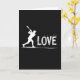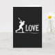 This card opens on a deep black background where a crisp white silhouette of a baseball player is caught mid-swing, the bat arcing up with dramatic energy. The player’s body cleverly forms the tall “L” in the word “LOVE,” turning the action into a quiet nod to devotion ❤️. To the right, “OVE” sits in large white letters with a rough, chalk-like texture that feels like it was drawn in the heat of the moment. Tiny white flecks and streaks scatter outward from the letters, like dust and impact marks hanging in the air, adding a rush that reads as both sport and romance 🥰. The text runs horizontally across the center area, with the figure integrated into the first letter so your eye moves naturally from the swing into the word. A long, smooth white line sweeps along the bottom edge, grounding the scene like a baseline under the action. The overall look stays minimal, with only black space, bright white shapes, and those scattered specks framing the player and the word “LOVE.”