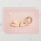 Erschwingliche, individuell bedruckte Fotokarten für die Geburtshilfe. Dieses elegante minimalistische Design besticht durch elegante Typografie, die auf Ihrem vollblutenden Foto überlagert ist. Personalisieren Sie es mit Babynamen und Geburtsdaten oder anderen benutzerdefinierten Text. Die Rückseite weist ein chic geometrisches Diamantenmuster auf. Verwenden Sie die Designtools, um eine beliebige Hintergrundfarbe auszuwählen, Schriftart und Farben zu bearbeiten, mehr Fotos hinzuzufügen und eine einzigartige Kindergeburtsankung für Ihr neues Kindermädchen zu erstellen.