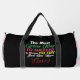This black duffle bag features a whimsical, multi-colored text design stating "I Love SLEEPING BECAUSE Dreams ARE BETTER THAN REALITY." This playful message resonates with dreamers and those who enjoy the comfort and escape that sleep provides.