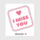 Adorable love-themed ‘I Miss You’ sticker, perfect for iPad covers, tablets, laptops, and notebooks. Die-cut, colorful, and heartfelt design to brighten your devices!