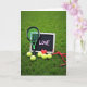 This greeting card opens on emerald green grass where a tennis racket with lime-green strings rests at a slight angle against a small dark chalkboard. Centered on the chalkboard, the word “LOVE” is written in soft chalky pink, standing out gently against the dark surface ❤️. At the base, several yellow-green tennis balls are scattered close together, like they’ve just rolled in after a shared match and a lingering laugh. A single crimson heart sits near the balls, adding a warm focal point that feels like a quiet glance between two people 🥰. A red ribbon stretches across the lower foreground, curling as it crosses the grass and tying the sporty scene to romance. The background grass fades into a soft blur, keeping your eyes on the racket, chalkboard, and clustered details. Diffused natural light softens the greens and reds, and the ribbon’s edge catches a faint highlight along its curve.