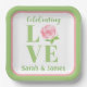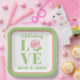 LOVE Watercolor Rose NAME Bridal Green Pink Pappteller