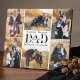 Celebrate Dad with a heartfelt keepsake he’ll treasure forever. This personalized “Love You Always Dad” photo plaque features space for six cherished photos arranged in a stylish frame, with a unique open area in the center to showcase the elegant typography of your special message: “Love You Always DAD. The combination of classic serif and handwritten script fonts creates a timeless and sophisticated look, while the clean white background lets your photos and message shine. The included easel-style stand makes it easy to display on a desk, shelf, or tabletop, turning family memories into a beautiful decorative piece. Fully customizable, you can adjust photos, and colors to create a truly personal gift. Perfect for Father’s Day, birthdays, anniversaries, holidays, or any special occasion, this plaque is a meaningful way to show Dad how much he is loved. Design by Moodthology Papery