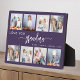 Give Grandma a gift she'll cherish. This photo collage plaque features eight of her favorite square photos of the grandkids, along with the message "Love You Grandma." The word "grandma" appears in elegant white handwriting script with flourishes at the beginning and end on a purple background. Add the names of up to four grandchildren. An ideal gift for holidays, birthdays or grandparents' day.