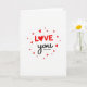 This card features the words “LOVE you” centered on a plain white background 🥰. “LOVE” is written in bright red, and the “O” is replaced by a solid red heart. Just below it, “you” appears in black with a loose, hand-drawn look, and there’s a simple underline beneath it. Around the main words, several small red hearts are scattered, each tilted a bit differently like they’re floating outward. The letters and hearts have a slightly rough, textured stroke that feels honest and human. The simple layout keeps the focus on the message, making it feel easy to give to a partner, close friend, or anyone you care about ❤️. Share it to pass along your Valentine’s Day feelings in a kind, heartfelt way.