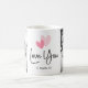 Coffee mug featuring cute, pink hearts and the text "love you" with your custom name below. On the sides are two photo templates.