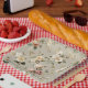 Verleihen Sie Ihrem festlich gedeckten Tisch mit diesem First Bloom LoveBird Party-Teller eine romantische Note. Das Design zeigt ein Paar zarter Vögel, umgeben von rosafarbenen und elfenbeinfarbenen Blumen, sanftem Grün und einem eleganten Band-Detail und bringt eine botanische Schönheit im Stil von Erbstücken zu Verlobungsfeiern, Bridal-Events, Gartenpartys und Frühlingsfesten.