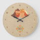 Lovebird-Owls auf der Burlap Monogram-Uhr Große Wanduhr